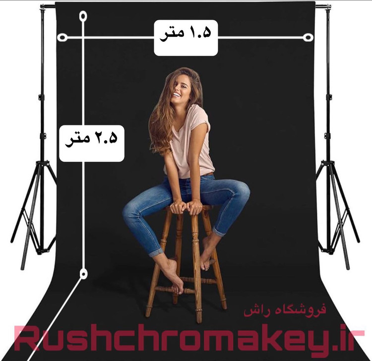 رنگ مشکی : سایزبندی فون عکاسی عرض 1.5 متر در ارتفاع 2.5 متر